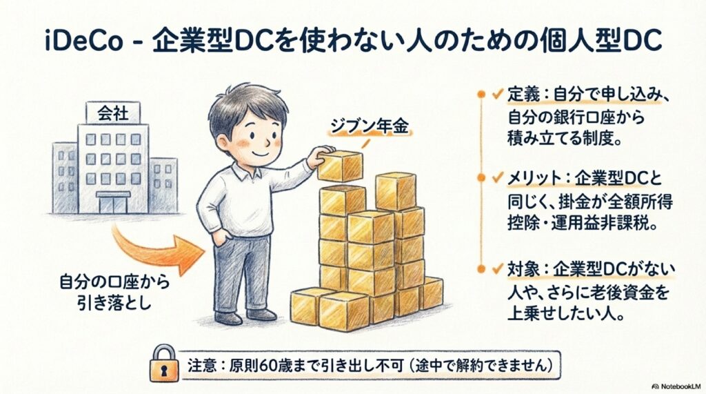 会社が社員の老後のために用意してくれた制度 - iDeCo(イデコ=個人型確定拠出年金):